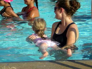 Over the two weeks that Julia did swim lessons, she learned to blow bubbles in the water, float on her tummy (assisted), and float on her back (assisted), jumping off the side into the water, and even worked on kicking in the water and doggie paddling. What a great extension of her OT too! Julia LOVED being in the water! On the first day, she wanted to go into the deep end with the instructor. She had no fear of the water. Unfortunately they were short on actual instructors and Julia's class had lifeguards helping each day that didn't seem to know how to properly handle a child in the water, especially one with sensory issues who needed to feel secure when they were flipping her over from her front to back, in the water.